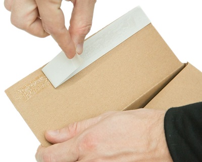 De meeste dozen die wij gebruiken hebben twee plakstrips en één scheurstrip.
