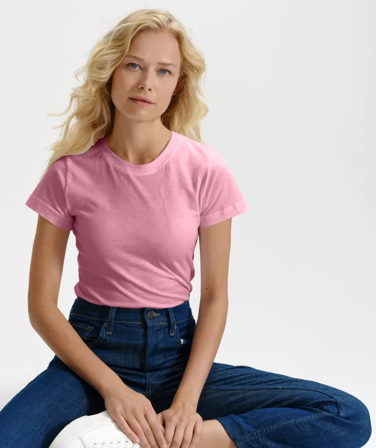 Dames eenvoudig T-shirt, roze, XS